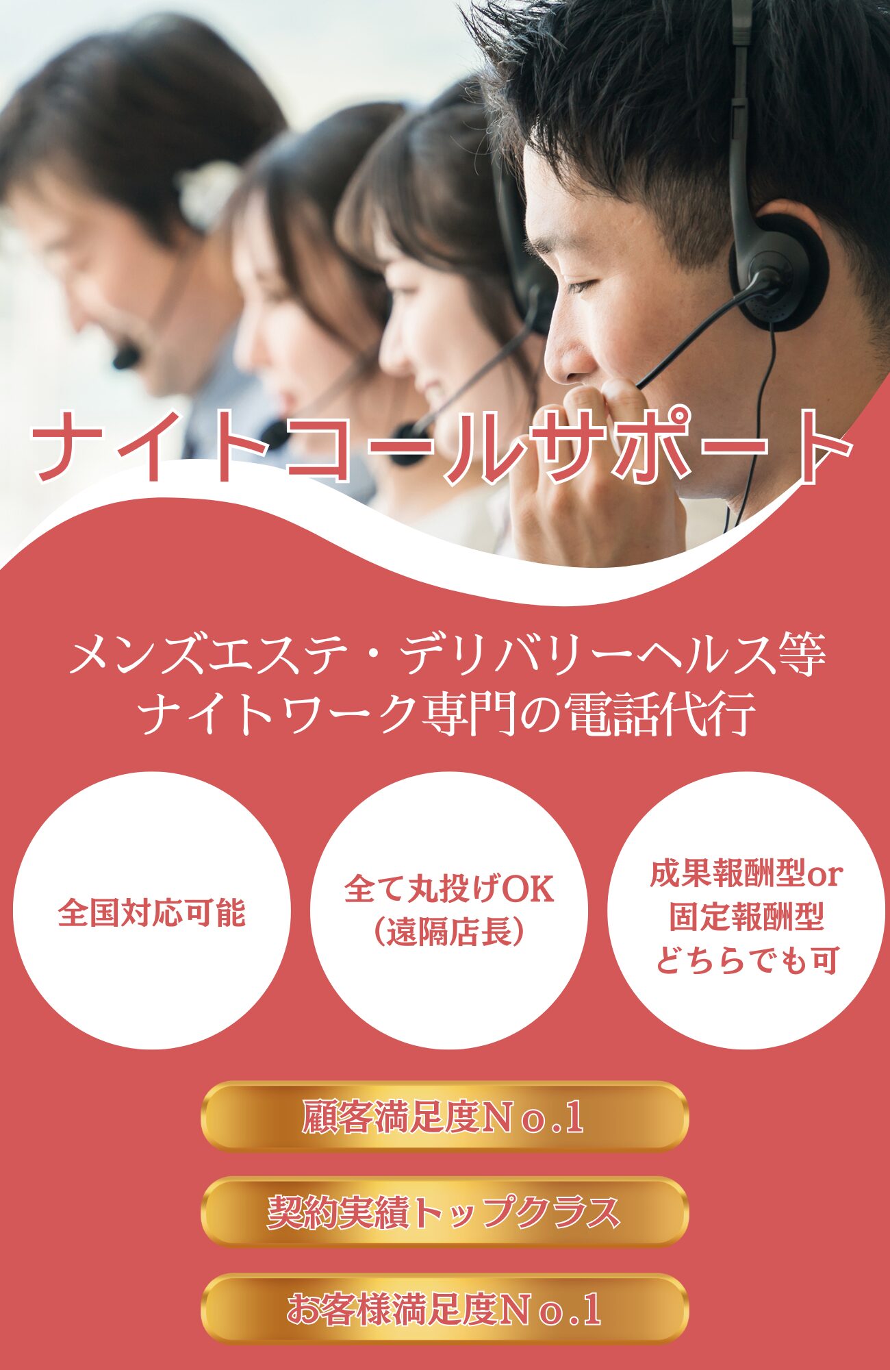 「うちは高級店なので、お客様に安心感を持ってもらうために丁寧な対応が必須。でもナイトコールサポートの女性オペレーターさんは落ち着いた接客で、お客様からの評判も上々です。」